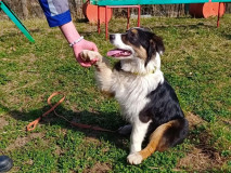 Первый день занятий прошел успешно: Одри продемонстрировала отличные задатки послушания и желание освоить новые команды. Конечно, впереди долгий путь подготовки, однако первые шаги уже сделаны уверенно и смело.