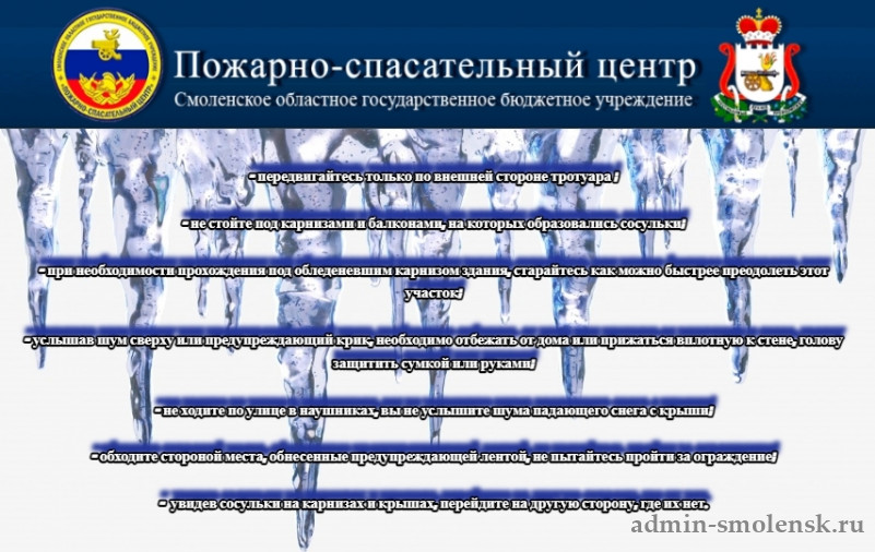 При колебании температуры воздуха возможно образование и обрушение значительных масс мокрого снега и крупных сосулек с крыш. Во избежание несчастных случаев настоятельно рекомендуется соблюдать повышенную бдительность при перемещении по улицам города, воздерживаться от нахождения вблизи фасадов зданий, а также избегать зон возможного скопления массивов замерзшей воды и снега в виде ледовых гирлянд.