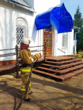 Сотрудники пожарной части 79 провели пожарно-тактическое занятие в поселке Озёрный на территории Храма Рождества Пресвятой Богородицы. Цель тренировки — отработка действий личного состава при возникновении пожара в культовом сооружении, проверка готовности техники.