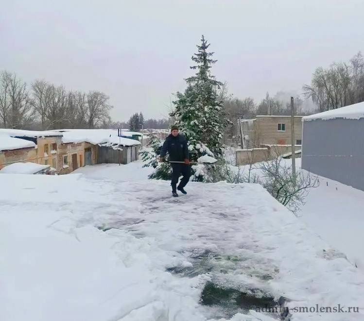 В 71 пожарной части города Смоленска провели уборку снега и наледи, накопившихся на крыше здания. Очистка направлена на снижение риска повреждений несущих конструкций крыши, вызванных чрезмерной нагрузкой.