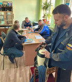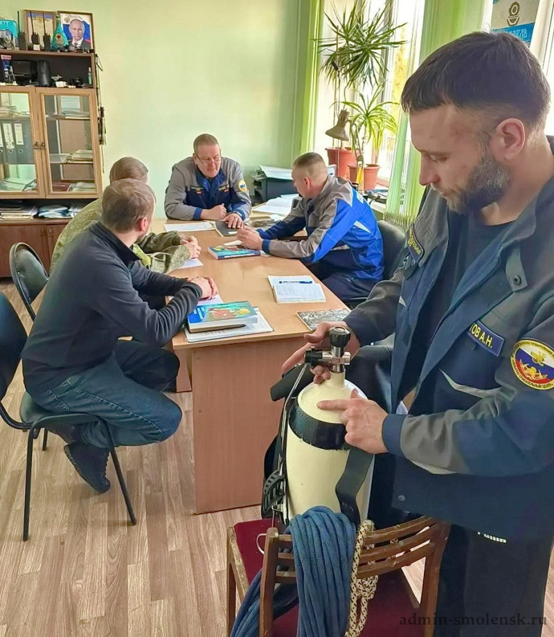 Личный состав поисково-спасательного отряда провёл теоретическое занятие. Условия погоды помешали проведению запланированной практической подготовки водолазов на воде.