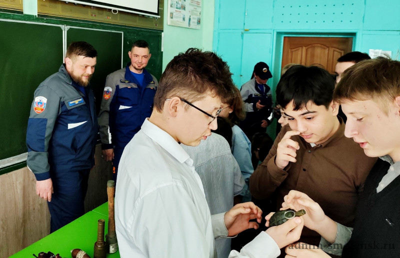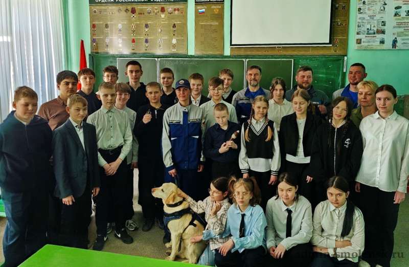 Ученики седьмых классов школы №29 встретились с сотрудниками кинологической службы и специалистами отряда специальных работ. Гости познакомили школьников с дружелюбной служебной собакой, рассказали о правилах поведения в чрезвычайных ситуациях и наглядно продемонстрировали найденные боеприпасы времён Великой Отечественной войны.